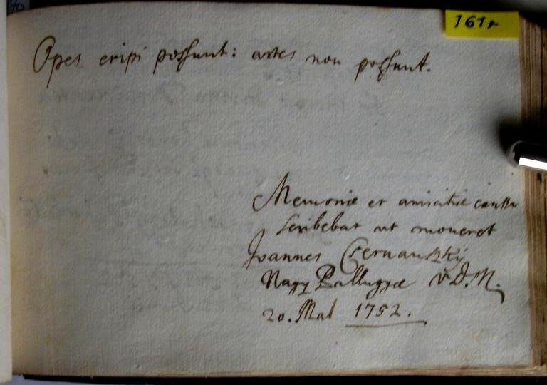 | Az inscriptio szövege: | Opes eripi possunt: artes non possunt. |