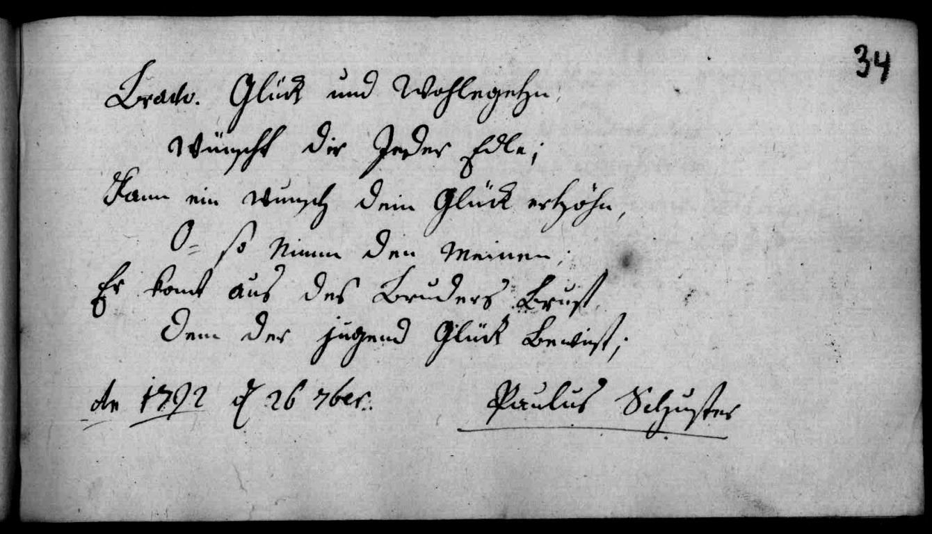 | Az inscriptio szövege: | Braw, Glück und Wohle[r]gehn Wünscht dir Jeder Edle, Kann ein Wunsch dein Glück erhöhn, O, so nimm den meinen, Er komt aus des Bruders Brust, Dem der jugend Glück Bewust. |