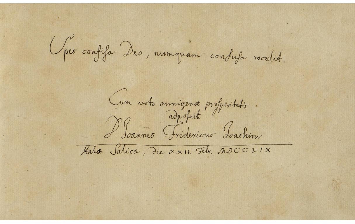 | A bejegyző saját aláírása: | Joannes Fridericus Joachim |
