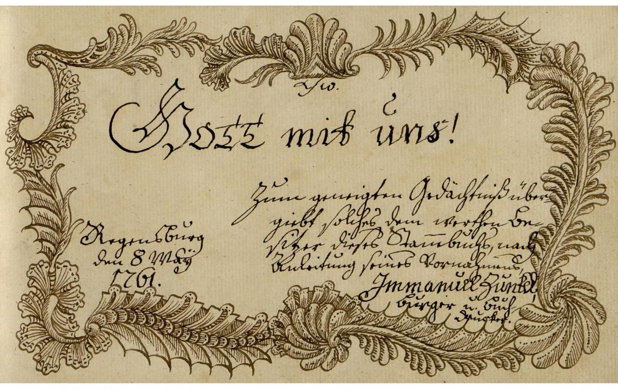 | Kiegészítő szöveg: | Zum geneigten Gedächtniß übergiebt solches dem werthen Besitzer dieses Stam/m/buchs nach Anleitung seines Vornahmens |