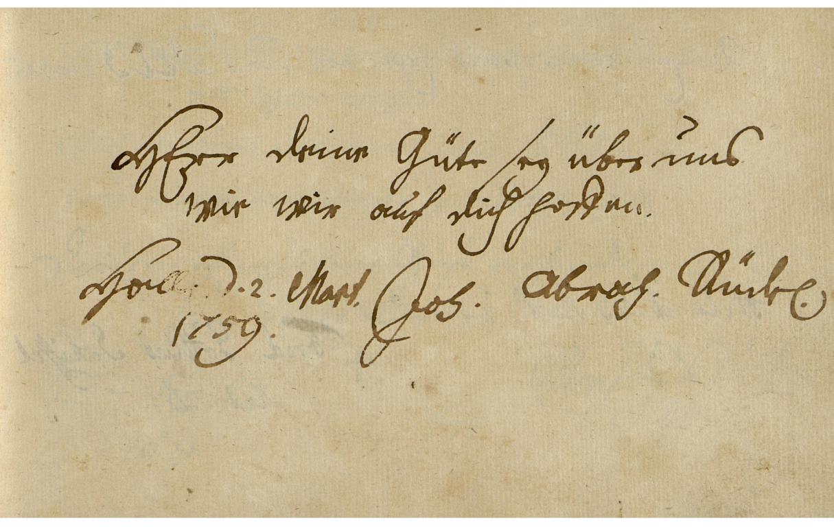 | A bejegyző saját aláírása: | Joh/ann/ Abrah/am/ Rüdel |