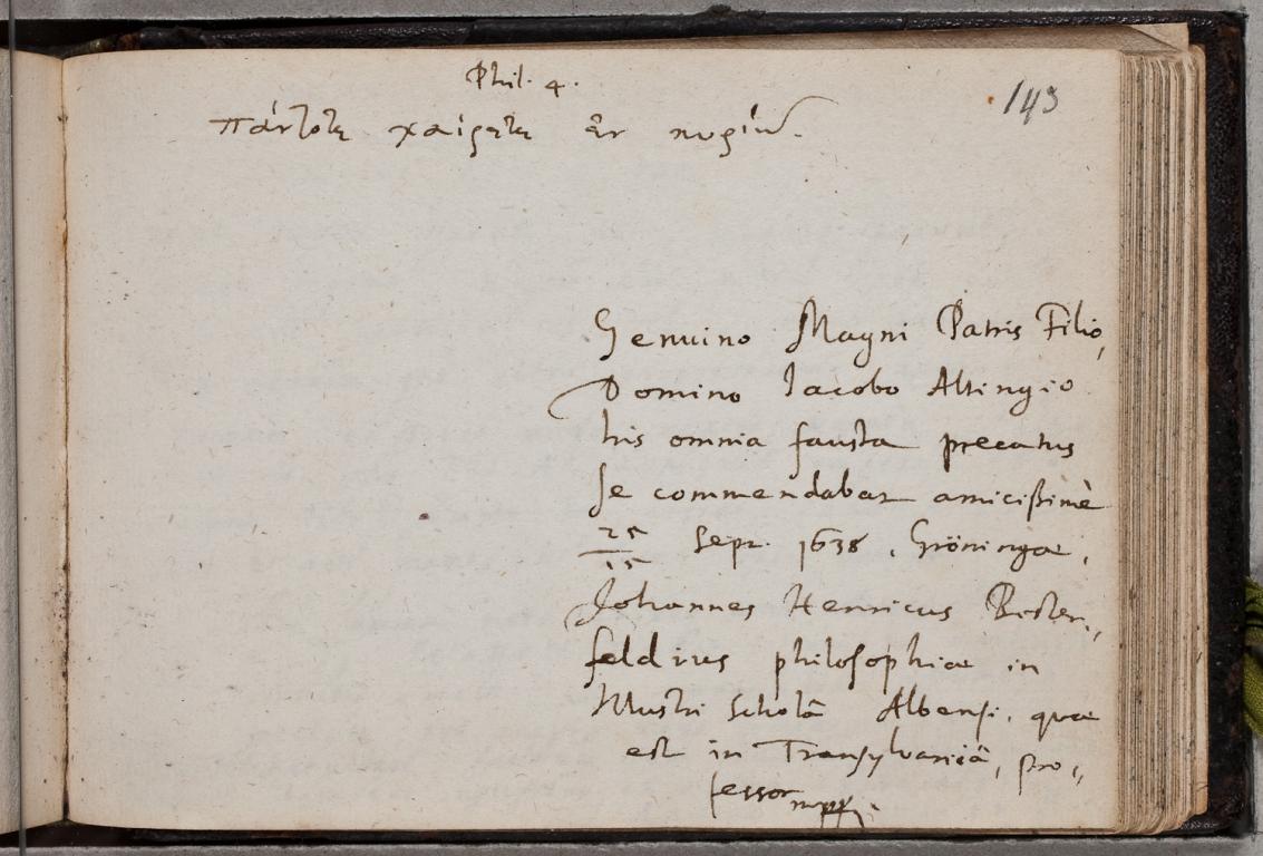 | A bejegyző titulusa: | philosophiae in Illustri Schola Albensi, quae est in Transylvania, professor |