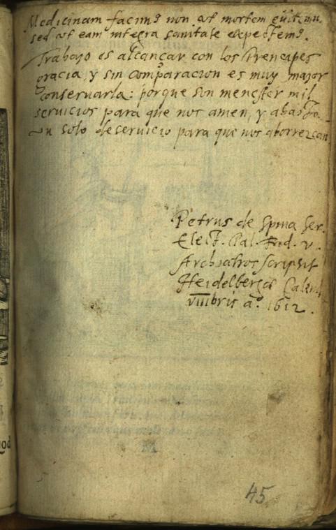 | A bejegyző titulusa: | Ser/enissimi/ Elect/oris/ Pal/atini/ Frid/erici/ V. Archiatros |
