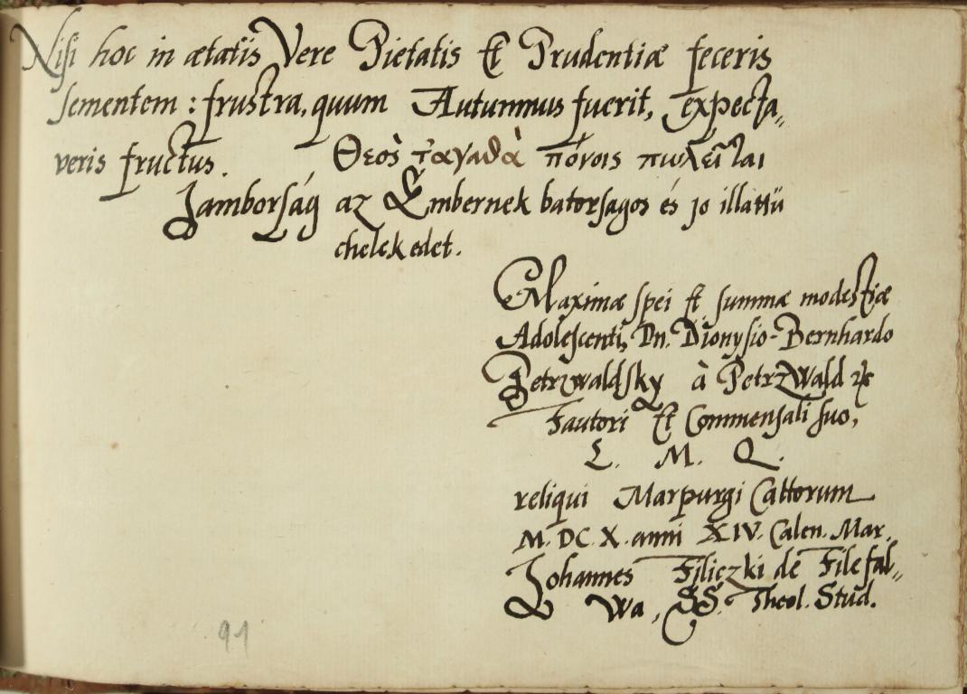 | Az albumtulajdonos bejegyzésben olvasható neve: | Dionysio-Bernhardo Petrzwaldsky a Petrzwald |