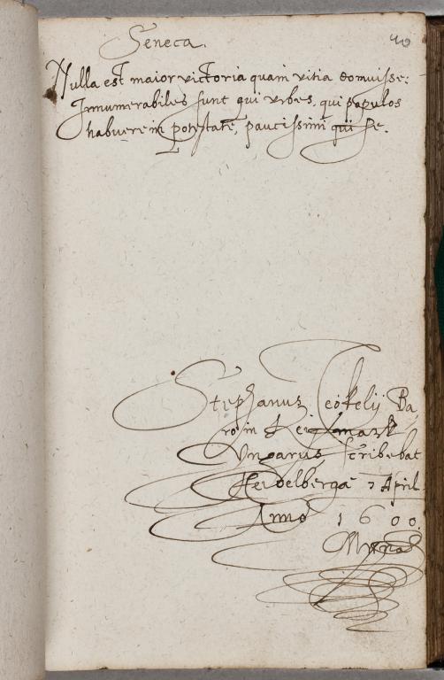 | Az inscriptio szövege: | Nulla est maior victoria, quam vitia domuisse: Innumerabiles sunt, qui vrbes, qui populos habuere in potestate, paucissimi, qui se. |