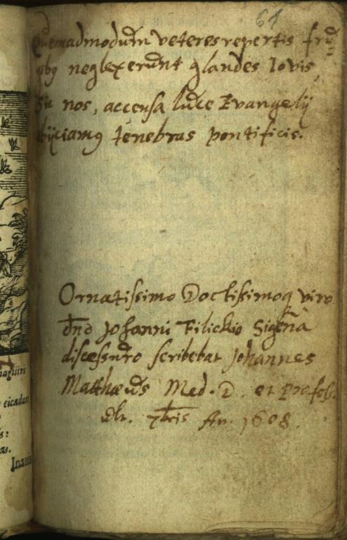 | Kiegészítő szöveg: | Ornatissimo Doctissimoque viro d/omi/no Johanni Filickio Sigena discessuro scribebat |