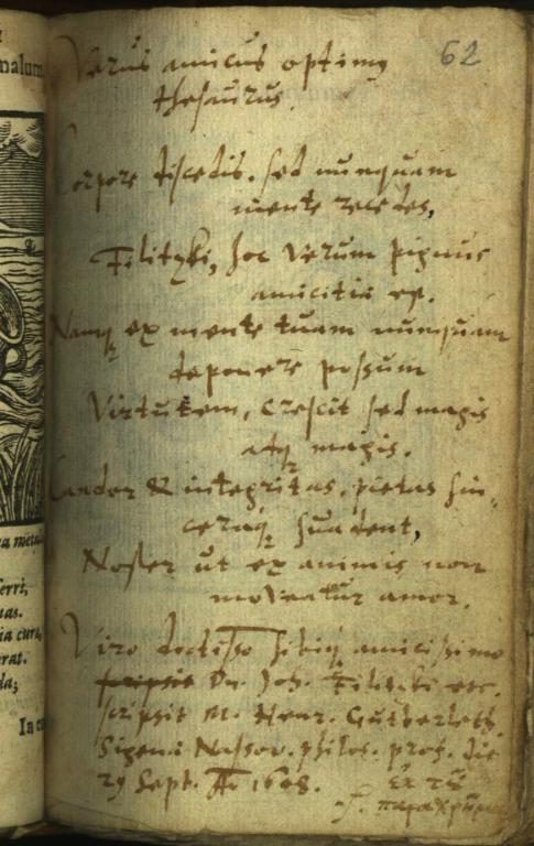| Kiegészítő szöveg: | Viro doctiss/im/o sibique amicissimo <scripsit>, D/omi/n/o/ Joh/anni/ Filitzki etc. scripsit ... e0k tou= paraxrh=ma |