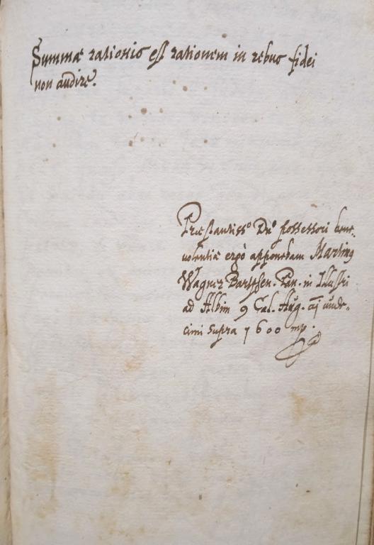 | Az inscriptio szövege: | Summae rationis est rationem in rebus fidei non audire. |