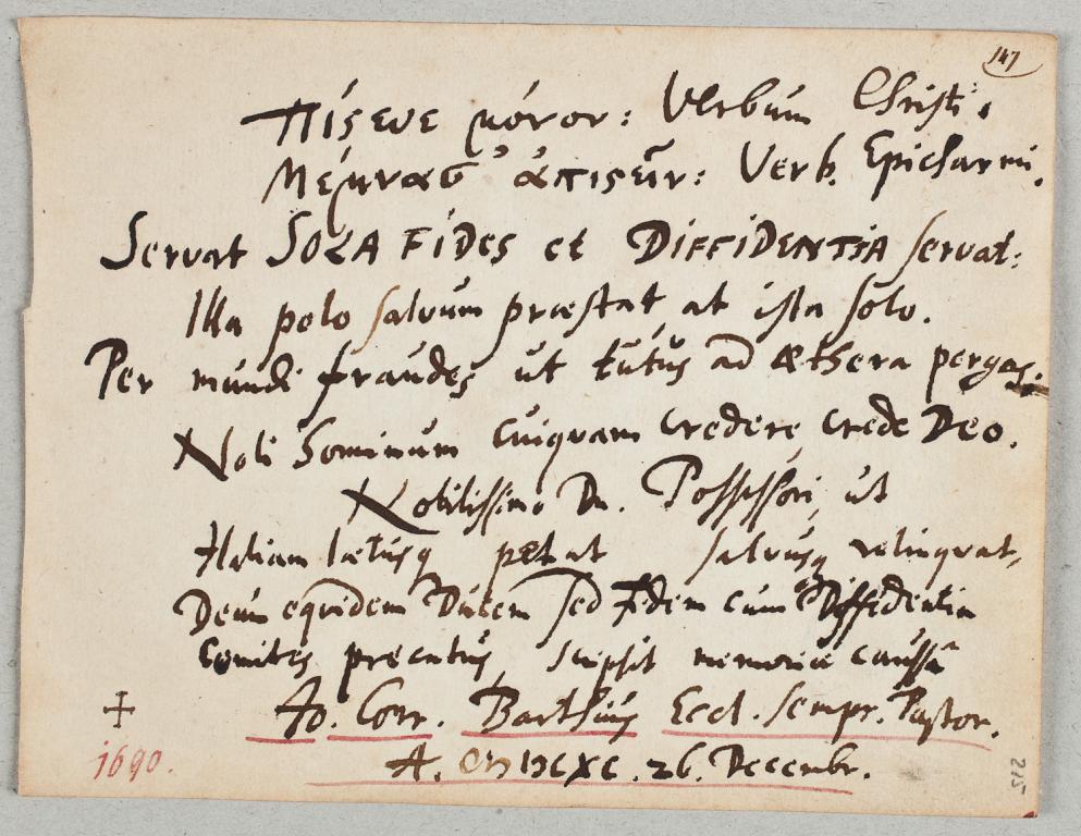 | Kiegészítő szöveg: | Nobilissimo D/omi/n/o/ Possessori, ut Haliam laetusque petat, salvusque relinqvat, Deum eqvidem Ducem, sed Fidem cum Diffidentia Comites precatus scripsit memoriae caussa |