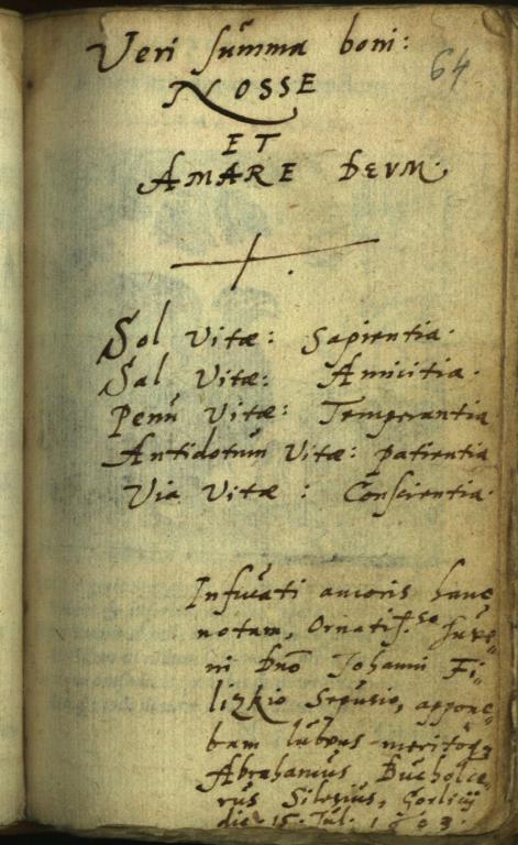 | Kiegészítő szöveg: | Infucati amoris hanc notam Ornatiss/im/o Juveni, D/omi/no Johanni Filizkio Sepusio apponebam lubens meritoque |