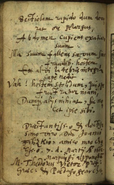 | Kiegészítő szöveg: | Praestantiss/im/o et doctissimo viro, D/omi/no Joanni Filizkio, amico meo chariss/im/o ... apponeba/m/ |