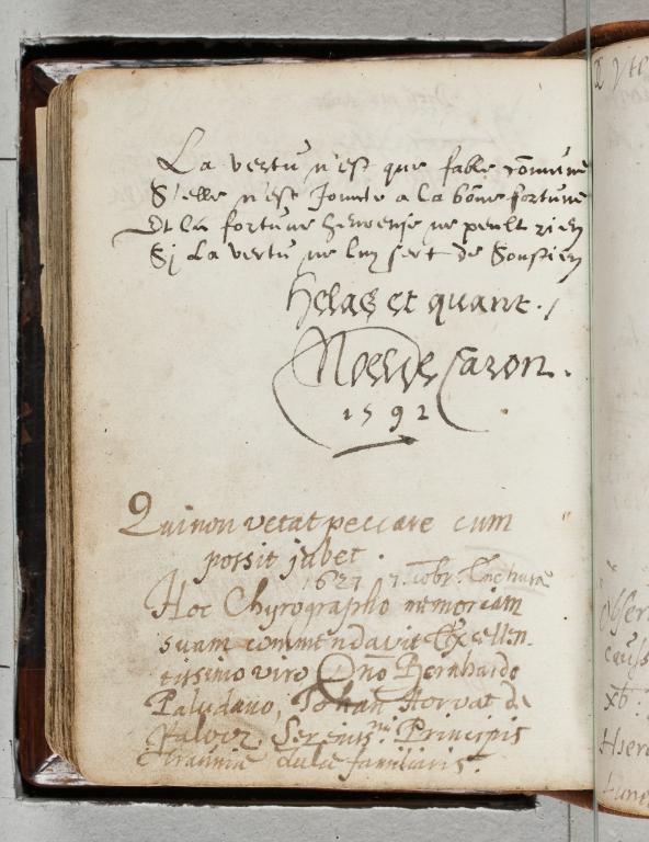 | Kiegészítő szöveg: | Hoc Chyrographo memoriam suam commendavit Excellentissimo viro, D/omi/no Bernhardo Paludano |
