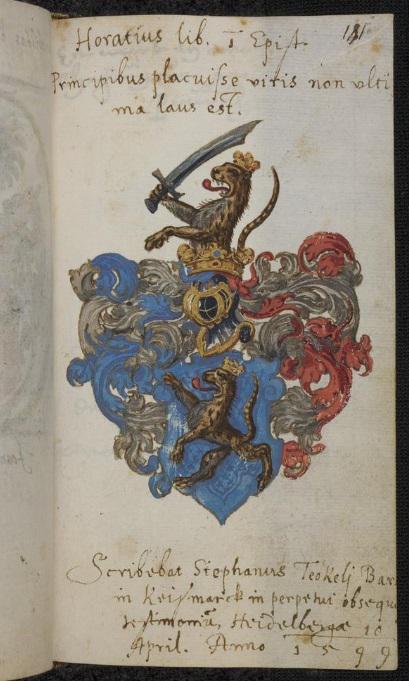 | Az albummal kapcsolatos általános megjegyzések: | Az albumban 1582-1605 között keltezett bejegyzések olvashatók. |
