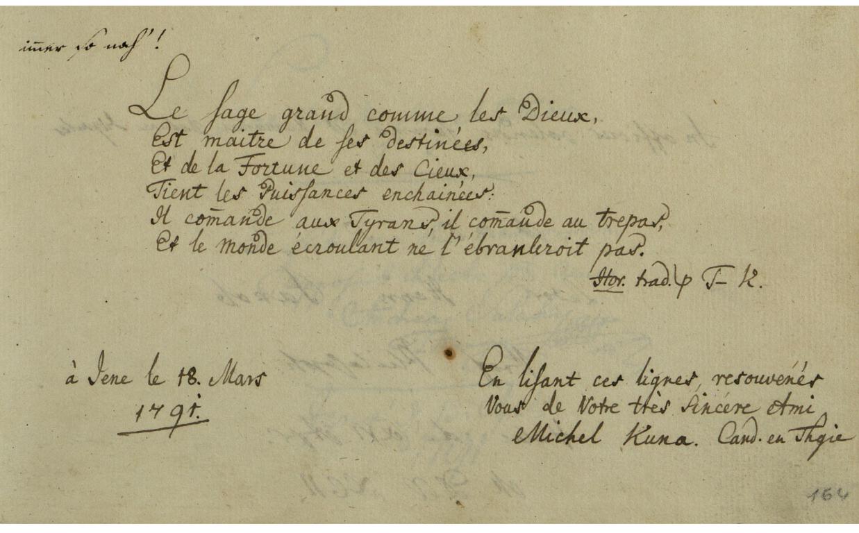| Kiegészítő szöveg: | En lisant ces lignes resouvénés Vous de Votre très sincére Ami |