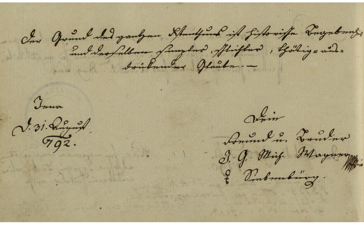 | A bejegyző saját aláírása: | J. G. Mich. Wagner |