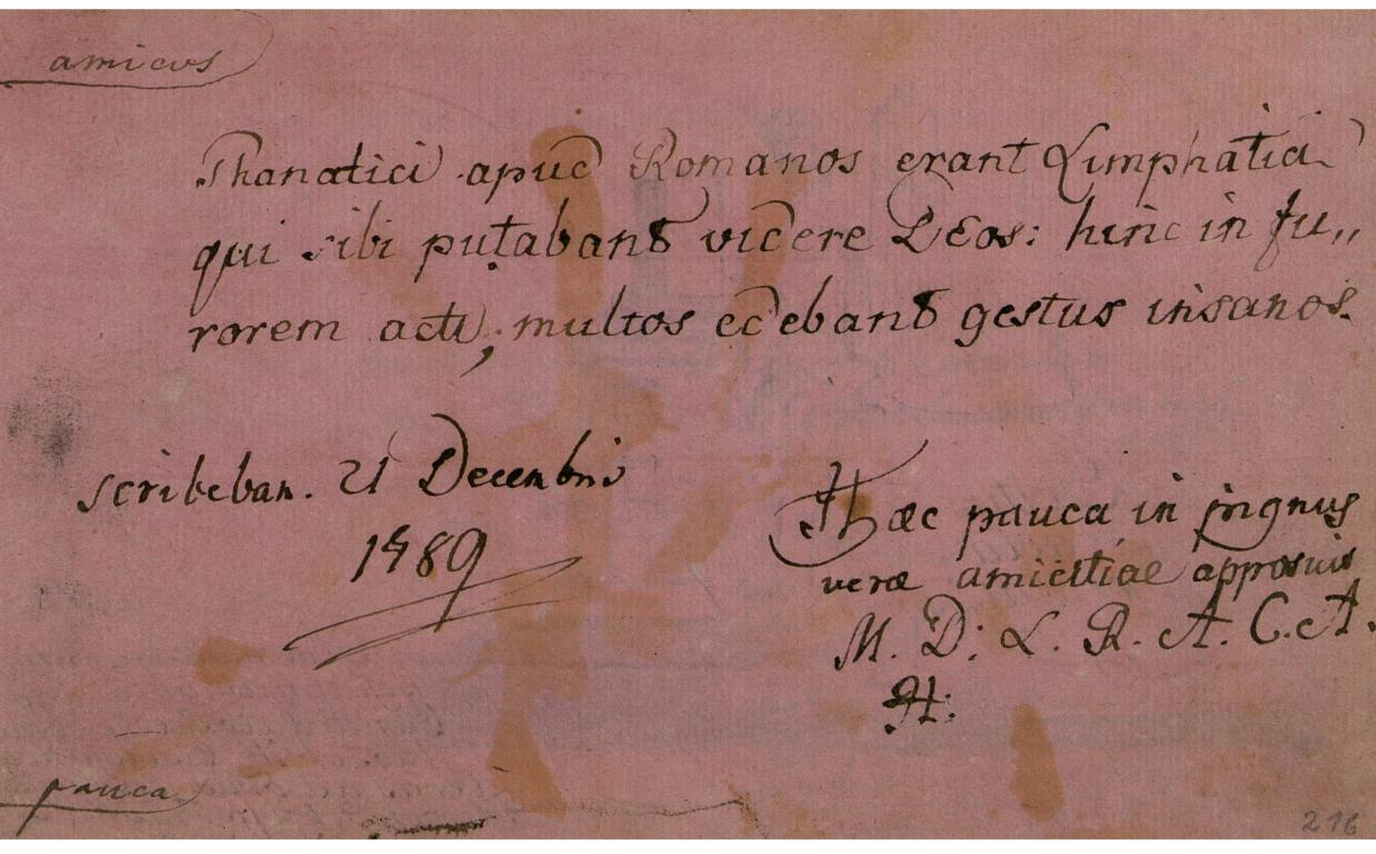 | A megjegyzés szövege: | [pagina iungit] amicos ... [Sapienti] pauca |