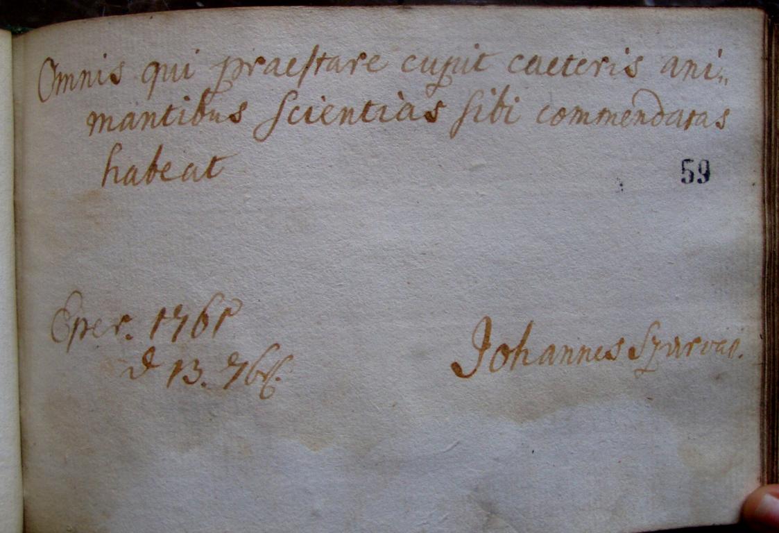 | Az inscriptio szövege: | Omnis, qui praestare cupit caeteris animantibus, scientias sibi commendatas habeat. |