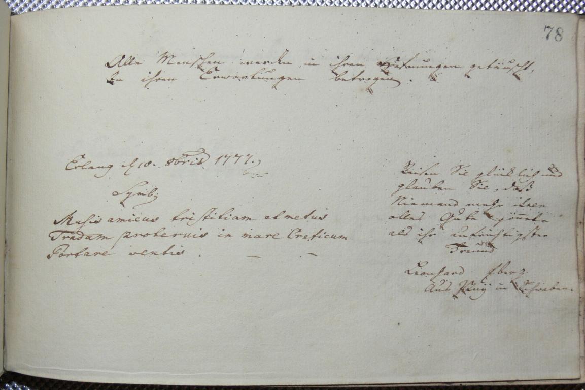 | A bejegyzővel kapcsolatos szakirodalom: | 1. MErlangen, 11. 1777.04.20. |