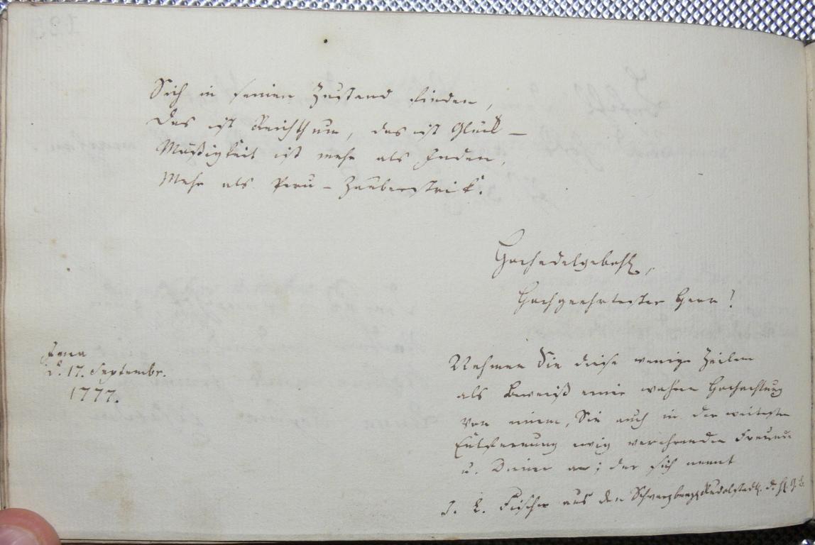 | Kiegészítő szöveg: | Hochedelgeboh/rner/, Hochgeehrtester Herr! Nehmen Sie diese wenige Zeilen als Beweiss einer wahren Hochachtung von einem, Sie auch in der weitesten Entfernung ewig verehrenden Freunde u/nd/ Diener an, der sich nennt |