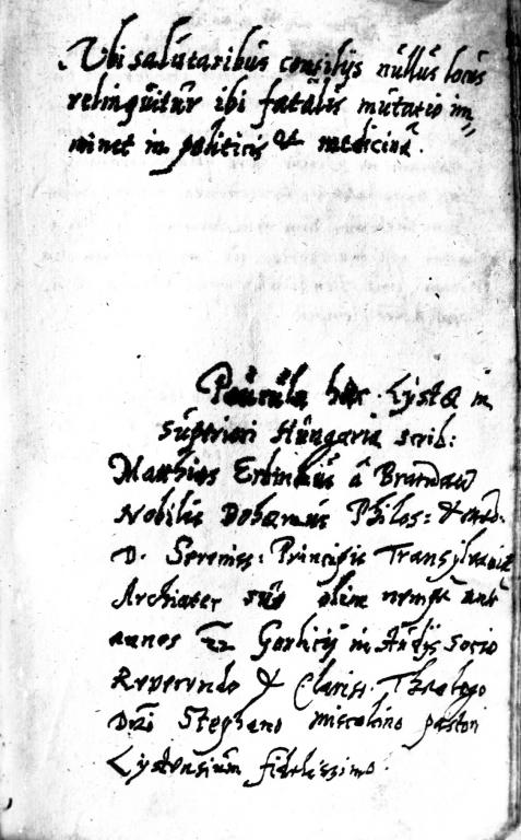 | A bejegyző titulusa: | Nobilis Bohemus, Philos/ophiae/ et Med/icinae/ D/octor/, Sereniss/imi/ Principis Transylvaniae Archiater |