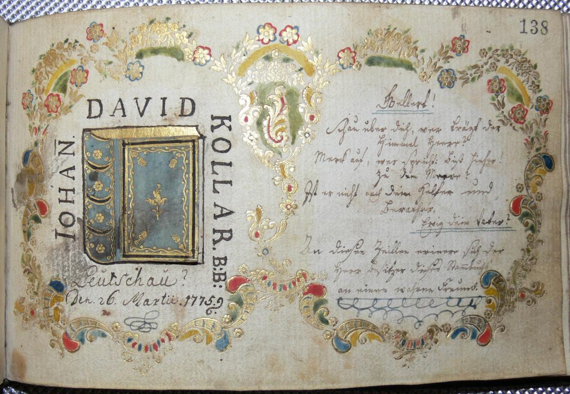| Kiegészítő szöveg: | An diesen Zeillen erinere sich der Herr Besitzer dieses Stam/m/buchs an einen wahren Freund |