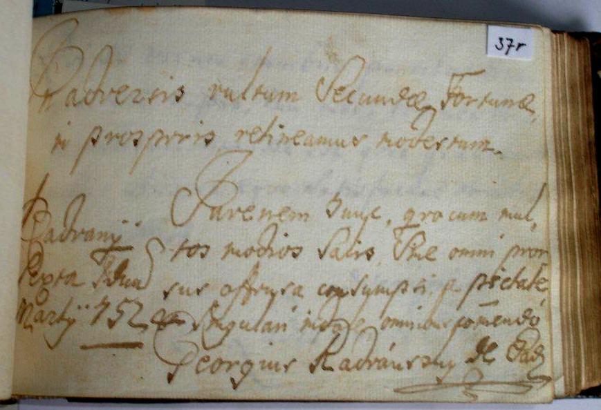 | A bejegyző saját aláírása: | Georgius Radvánszky de Ead/em/ |