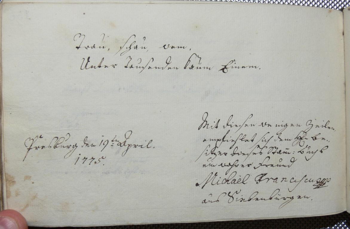 | Kiegészítő szöveg: | Mit diesen wenigen Zeilen empfiehlet sich dem He/rr/n Besitzer dieses Stam/m/ Buchs ein wahrer Freund |