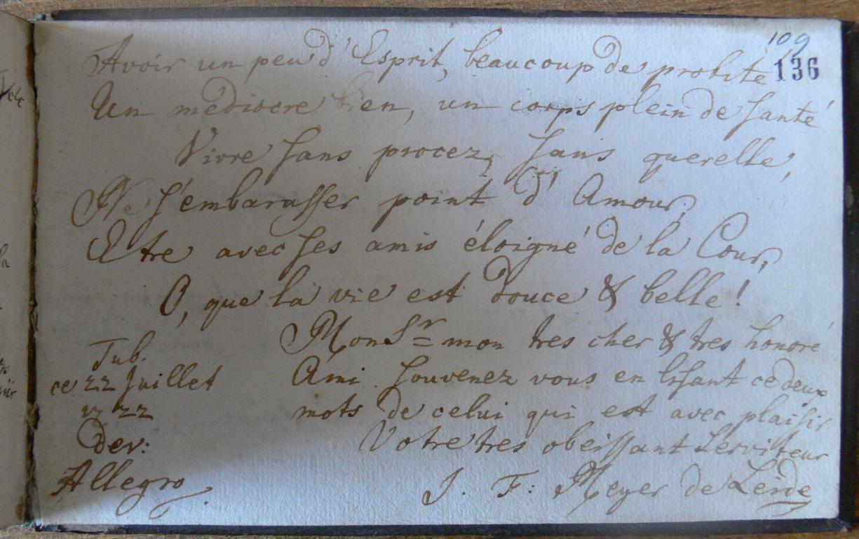 | Kiegészítő szöveg: | Mon S/ieu/r mon tres cher et tres honoré Ami, souvenez vous en lisant ce deux mots de celui, qui est avec plaisir Votre tres obeissant Serviteur |